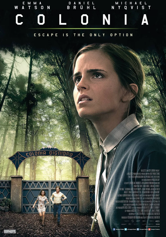 "콜로니아"는 2015년에 개봉한 역사 스릴러 영화로, 플로리안 갈렌베르거가 감독하고, 엠마 왓슨, 다니엘 브륄, 미카엘 니크비스트가 주연을 맡았습니다.